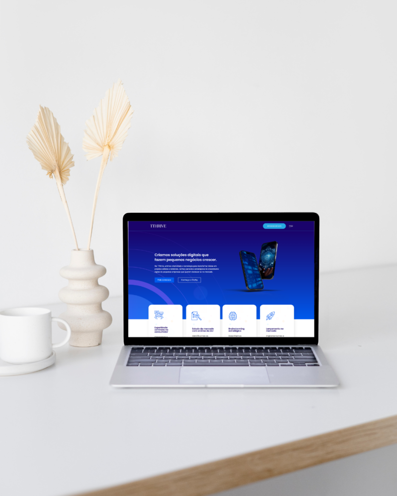 O desenvolvimento do website da TThrive reflete a visão de uma marca que se posiciona como parceira de crescimento digital para pequenas e médias empresas.